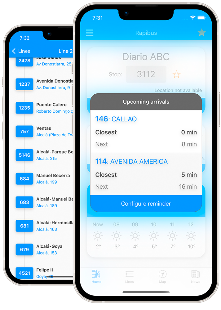 Rapibus cumple su función, da los tiempos de espera. Pero además te permite guardar recordatorios, ver paradas cercanas en el mapa, consultar líneas, paradas, rutas, noticias y mucho más. Esto hace que Rapibus tenga una aceptación tan grande entre los usuarios.